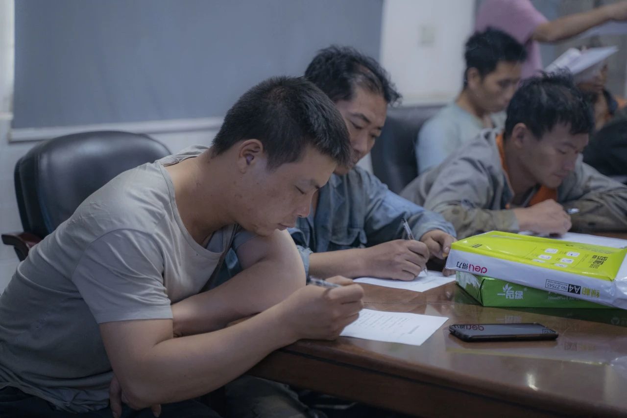 在對行車、有限作業(yè)空間安全操作標準進行細致學習后,全體參會人員一同觀看安全教育視頻,了解車間作業(yè)中發(fā)生的真實事故,以及事故帶來的人員財產(chǎn)傷害。安全生產(chǎn)教育培訓的環(huán)節(jié),車間工人進行行車安全知識培訓考試。安環(huán)委主任表示,他希望通過現(xiàn)場筆試這一方式,檢驗大家此次培訓掌握情況,同時進一步加深鞏固安全知識。